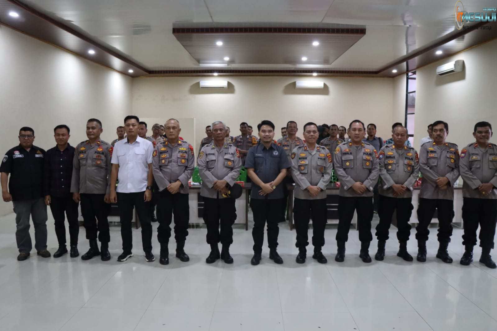 Giat dihadiri Pejabat Komisioner Bawaslu Kabupaten Mesuji Robby Ruyudha S.I.P, Waka Polres Mesuji Kompol Juli Sundara S.Pd, Para Kasat Jajaran Polres Mesuji, Para Kapolsek dan Kasubsektor Jajaran Polres Mesuji, Para Kasi, KBO dan Kanit Sat Polres Mesuji, Para Kanit dan perwakilan Bhabinkamtibmas Polsek serta Subsektor Polres Mesuji.