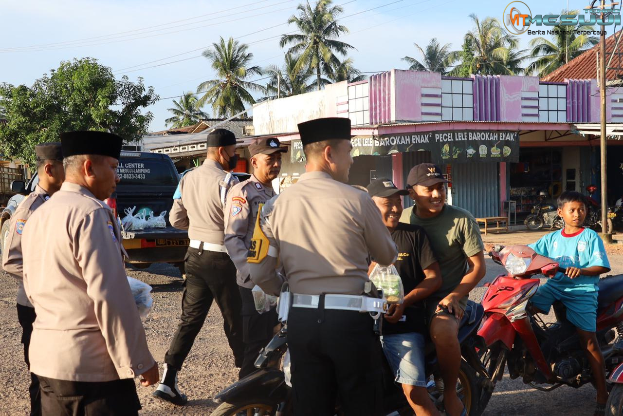 Hadir dalam giat Kapolres Mesuji AKBP Ade Hermanto S.H, S.I.K, CPHR, Kasat Lantas Polres Mesuji AKP Asep Suhendi S.H, M.H, Kasat Binmas AKP Sarijo S.H, Kapolsek Wat Serdang IPTU Heri Ramanda, Personil Polres mesuji dan Personil Polsek Way Serdang. (Team)