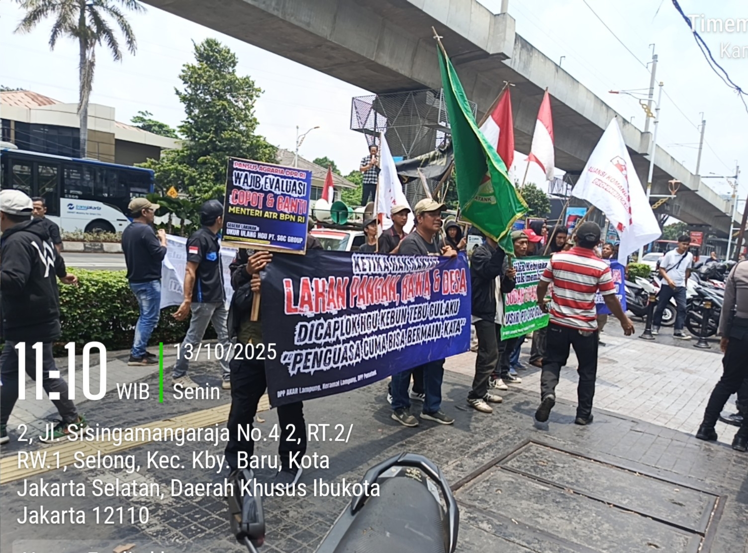 Usai berunjuk rasa di DPR RI, massa kemudian melanjutkan aksinya ke depan Kementerian ATR/BPN RI. Di sana, mereka kembali menegaskan desakan agar pemerintah segera melaksanakan pengukuran ulang seluruh HGU PT SGC dan perusahaan afiliasinya di Provinsi Lampung.