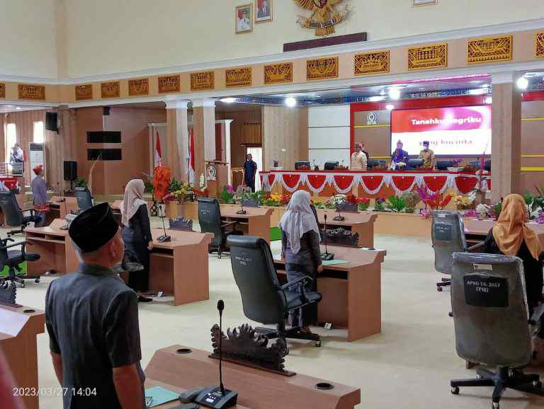 DPRD kabupaten Mesuji menggelar sidang paripurna istimewa dalam rangka memperingati Hari Ulang Tahun (HUT) Ke-59 Provinsi Lampung dengan tema ” Lampung bersinergi Lampung berprestasi, di Gedung DPRD Mesuji, Senin (27/3/2023).