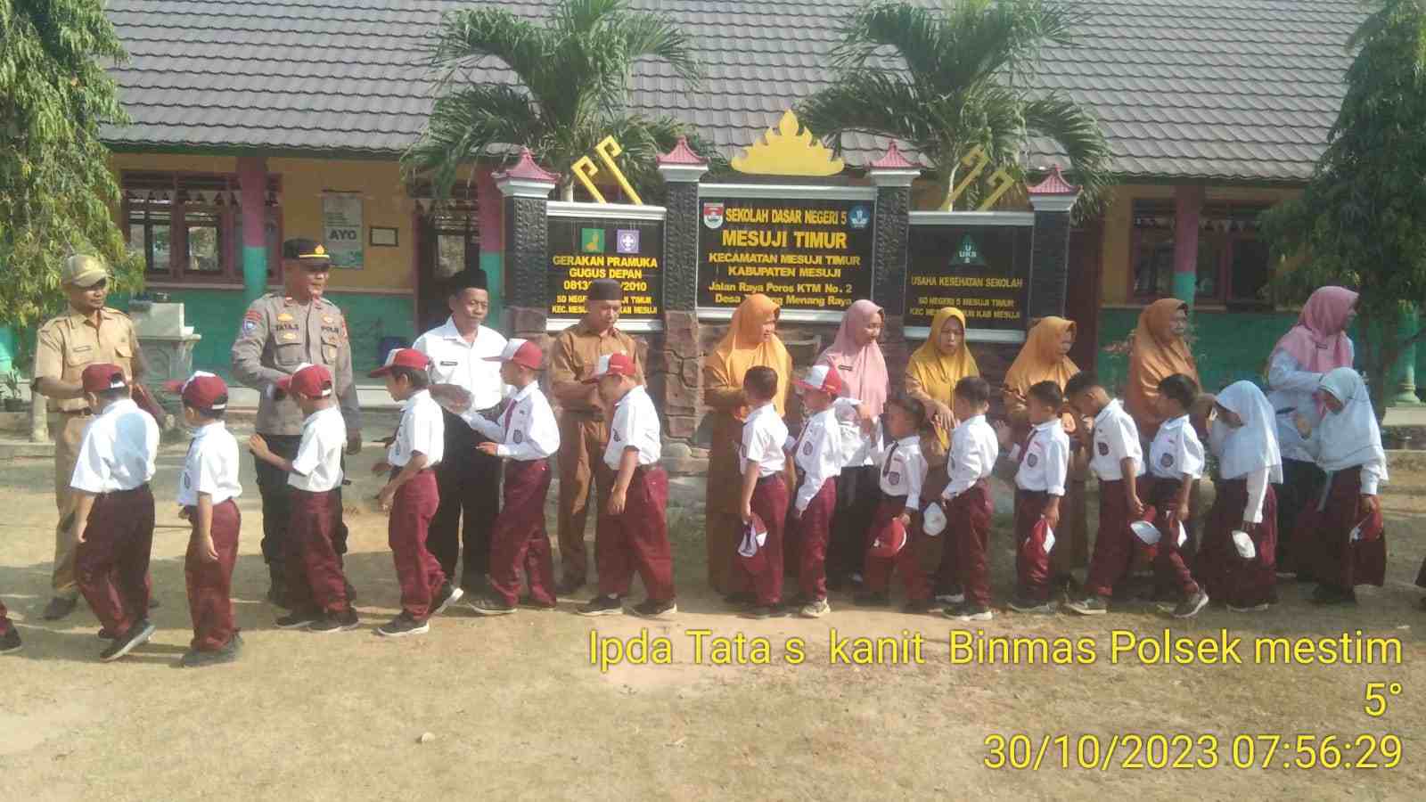 Kapolres Mesuji AKBP Ade Hermanto S.H, S.IK, CPHR Melalui Kapolsek Mesuji Timur IPTU Heri Ramanda, menjelaskan Giat kali ini menyasar Siswa Siswi di SDN 5 Mesuji Desa Tanjung Menang, Kecamatan Mesuji Timur, Kabupaten Mesuji dengan menjadi Pembina Upacara.