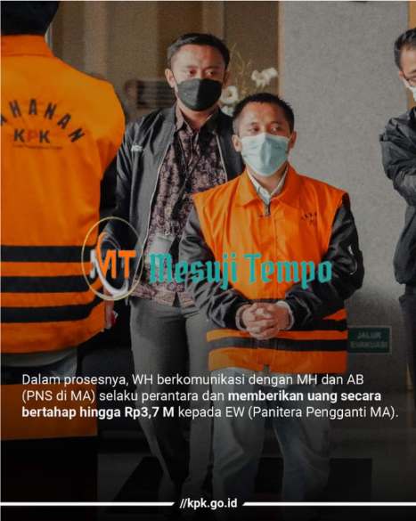 Tersangka WH diduga memberikan sejumlah uang kepada EW (Panitera Pengganti MA) dengan total mencapai Rp3,7 M