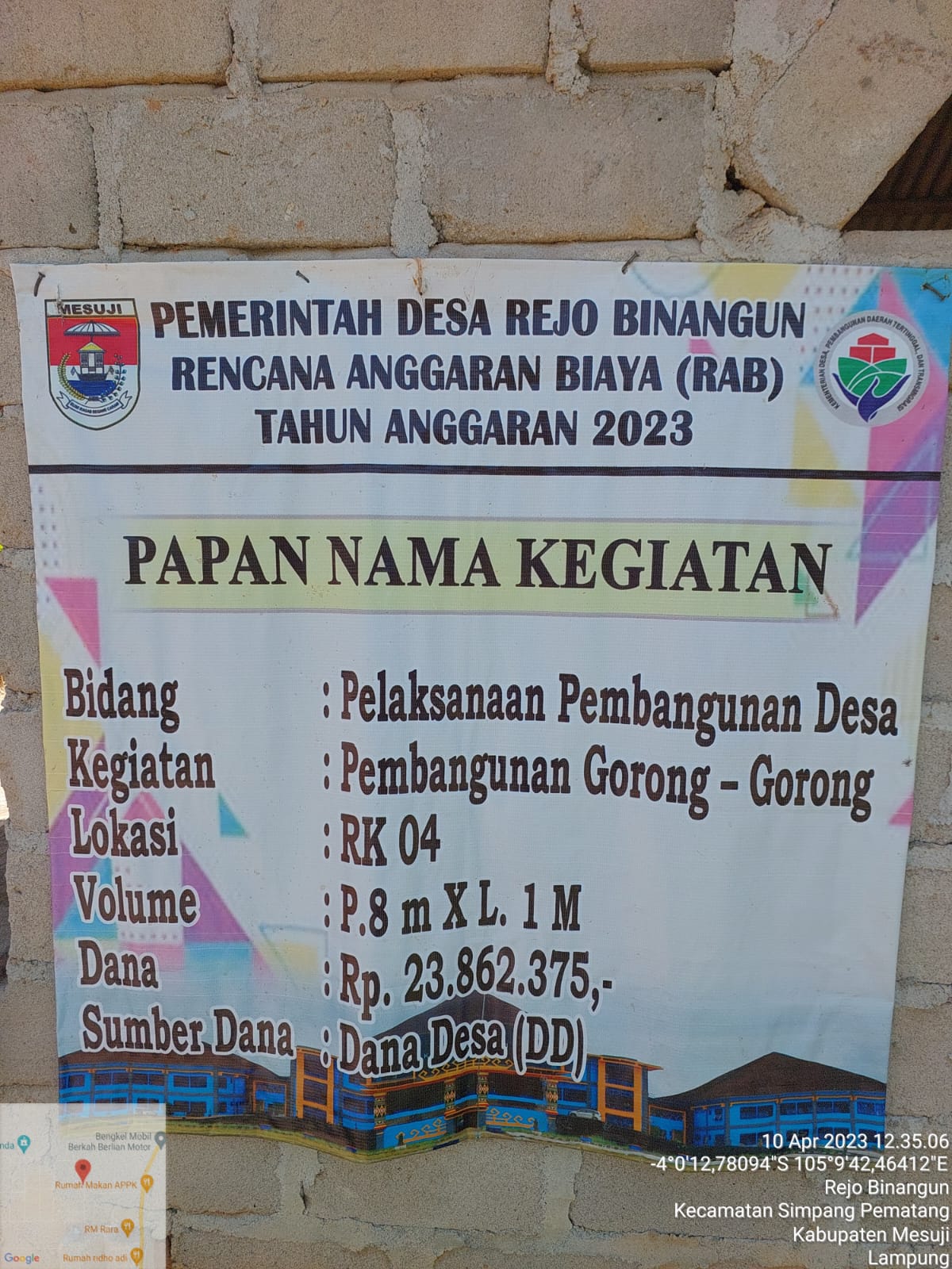 Guna memaksimalkan penyerapan dana desa yang di kucurkan pemerintah pusat, Desa Rejo Binangun, Kecamatan Simpang Pematang, Kabupaten Mesuji merealisasikan pembangunan gorong-gorong dan jembatan, selasa (11/4/23).