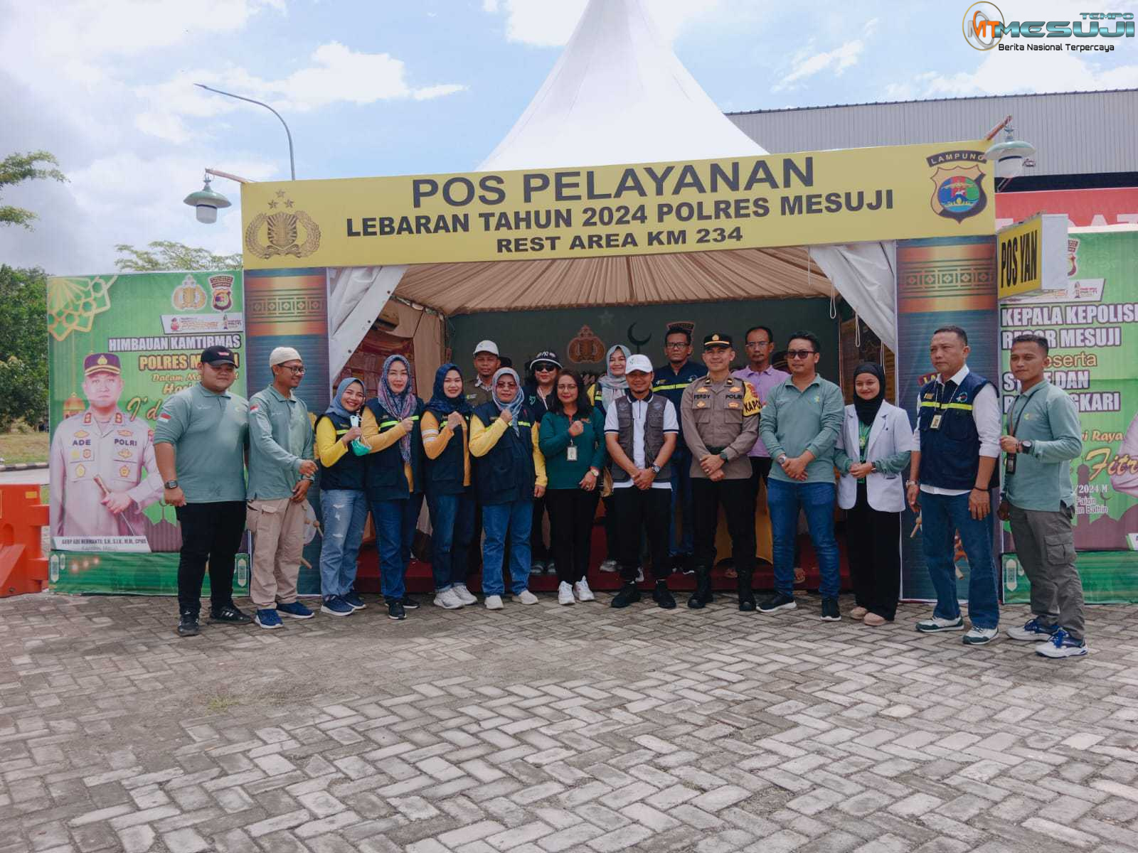 Dinas Kesehatan Kabupaten Mesuji bersama Polres Mesuji melaksanakan pelayanan kesehatan bagi para pemudik di pos pelayanan rest area km 234 Kabupaten Mesuji dengan semboyan mudik sehat, aman dan selamat, Sabtu(13/04/2024).