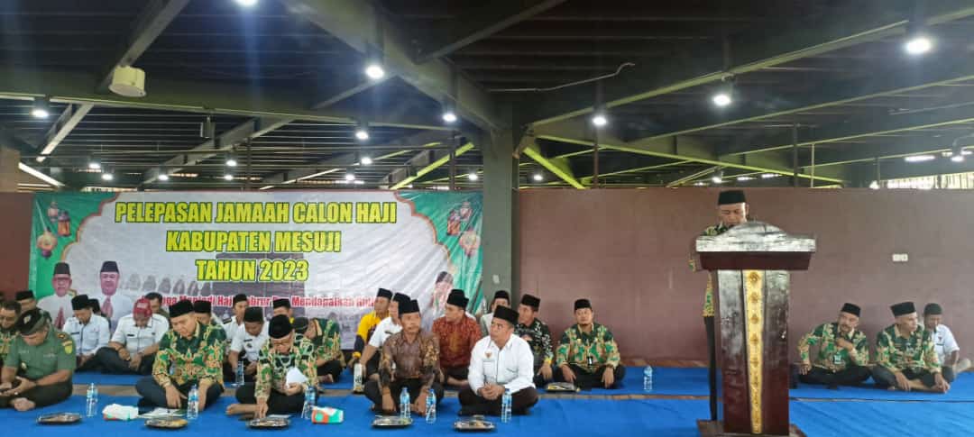 Pemerintah Kabupaten Mesuji melepas 35 orang Jamaah Calon Haji dari Kabupaten Mesuji Tahun 2023 bertempat di Wisata Religi Masjid Agung Desa Wira bangun Kecamatan Simpang Pematang, Kamis ( 8/06/2023 )