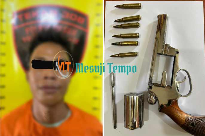 Kapolsek menambahkan, dari tersangka Anggota berhasil mengamankan Barang Bukti (satu) Pucuk Senjata Api Rakitan Warna Stainless dengan Silinder 6 lubang dan gagang yang terbuat dari kayu berwarna coklat, 6 (enam) Butir Amunisi aktif Kaliber 5.56 mm, dan 1 (satu) Bilah Senjata Tajam berwarna coklat dengan gagang yang terbuat dari kayu berwarna coklat dan sarung senjata yang terbuat dari kayu berwarna coklat.