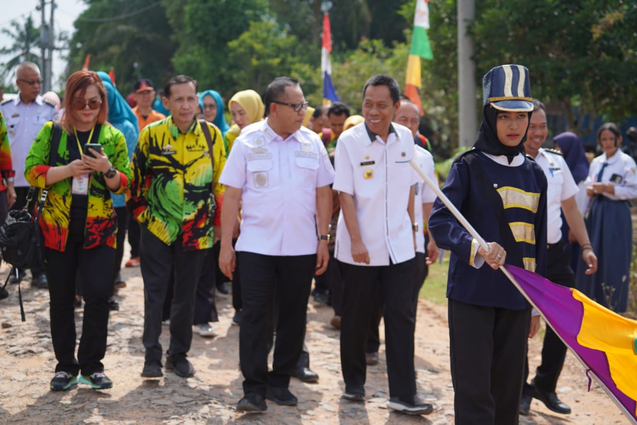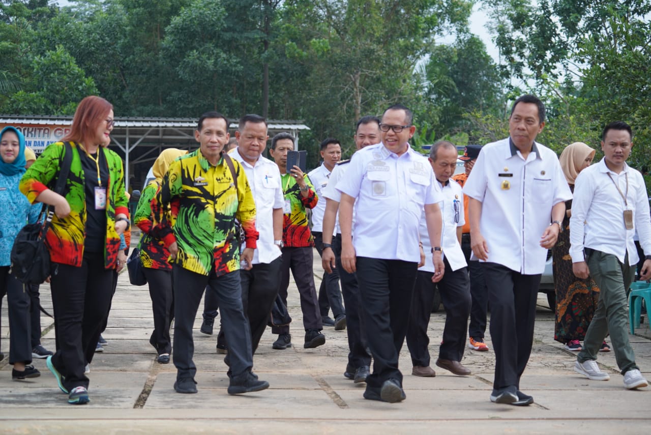 Penjabat Bupati Mesuji Drs.Sulpakar, MM bersama Ketua TP PKK Kabupaten Mesuji dan Kepala OPD Sekabupaten Mesuji Menyambut Kedatangan Tim Penilai Lomba Desa Tingkat Provinsi Lampung Tahun 2023 di Desa Tebing Karya Mandiri Kecamatan Mesuji Timur Kabupaten Mesuji, Rabu ( 21/06/2023 )